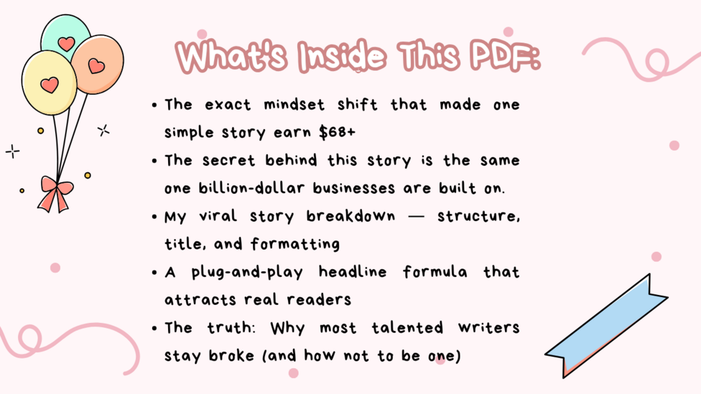 You’ll get the exact mindset, format, and strategy I used to turn one simple story into $68—and how you can do it too.